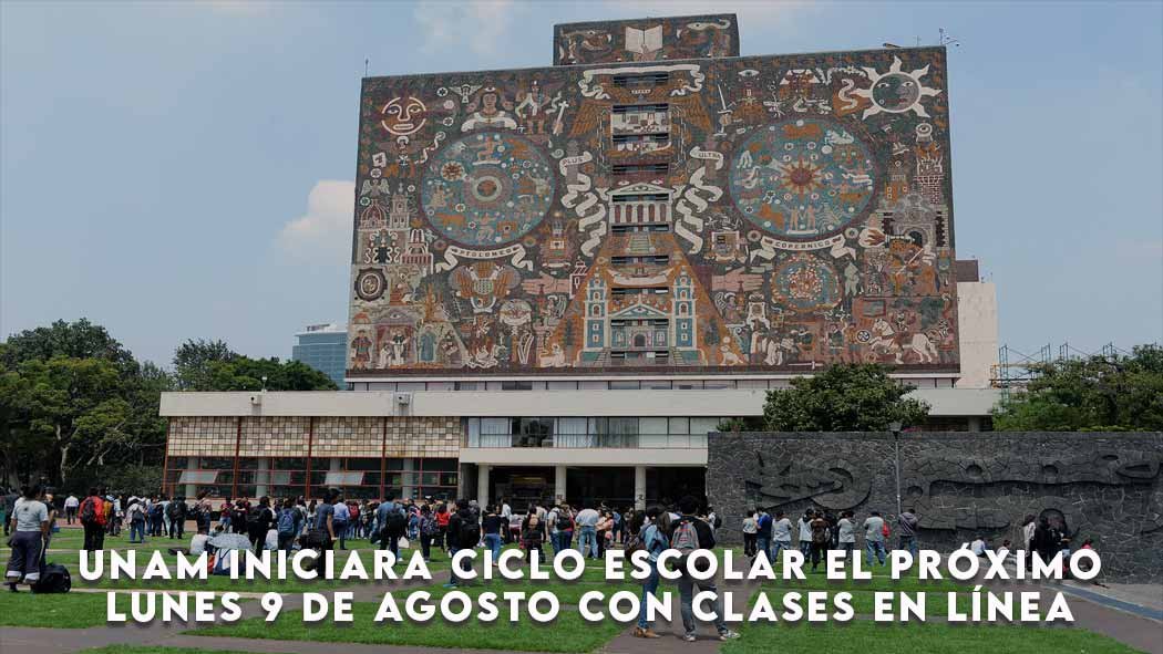 La UNAM iniciara ciclo escolar el próximo lunes 9 de Agosto con clases en línea, el ciclo escolar 2021-2022 de la Universidad Nacional Autónoma de México (UNAM) comenzará el próximo 9 de agosto en la modalidad de educación a distancia debido a la tercera ola de la pandemia que azota al país.